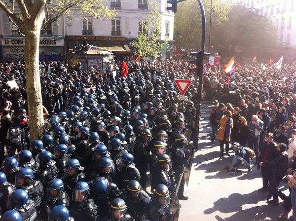 « Tout le monde déteste la police », « Police, casse-toi, la rue n’est pas à toi », « Rémi, Rémi [Fraisse], on t’oublie pas »… Rarement tête de cortège avait autant dirigé ses slogans contre la police un 1er-Mai. Rarement Journée internationale des travailleurs avait été escortée d’aussi près par des cordons de CRS et de gendarmes mobiles.