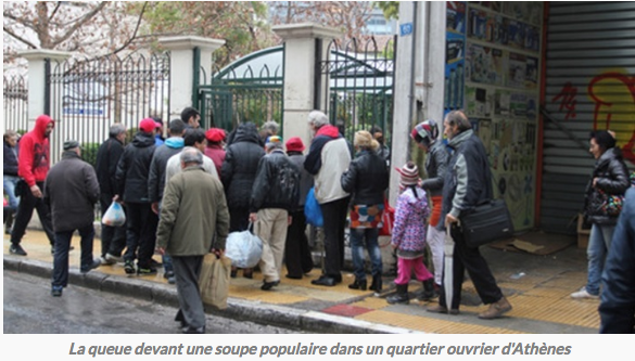 La queue devant un soupe populaire dans un quartier ouvrier d’Athènes