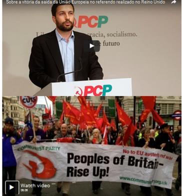 Le PCP salue en particulier les communistes britanniques et les autres forces de gauche qui, refusant les fausses dichotomies et s’opposant aux positions réactionnaires et xénophobes, ont assumé et affirmé leur voix dans la campagne du référendum pour la défense des valeurs de la démocratie, du droit du travail, des droits sociaux, du progrès, de la tolérance, de la solidarité et de la coopération entre les peuples.