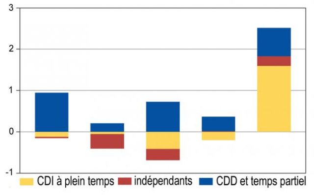 - l’emploi indépendant recule, sauf parmi les salariés les mieux payés.