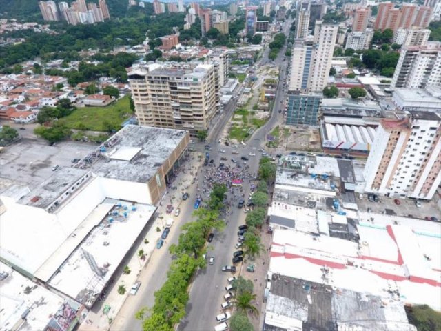 Les plans panoramiques donnent une tout autre image de l’ampleur des manifestations de droite que les plans serrés des télévisions internationales. Ici, une manifestation à Carabobo le 22 juillet, où l’on compte une cinquantaine de manifestants.