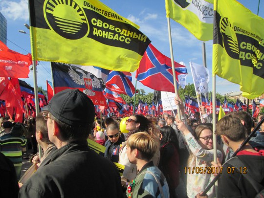De manière tout à fait accidentelle, je suis arrivé à Donetsk le « jour » de leur « République ». Leur 14-Juillet. En tant qu’invité d’Ekaterina, on m’a laissé, sans contrôle ni surveillance quelconque, regarder, filmer et en fin de compte me joindre à une énorme parade de dizaines de milliers de personnes représentant tous les aspects de la vie de chacune des régions de la RPD. Les médias occidentaux seront très déçus d’apprendre qu’il n’y avait là aucune mitrailleuse, aucune force russe lourdement armée pour forcer les gens à participer. En fait, au-delà de ce jour de parade, je n’ai vu nulle part aucun signe d’une quelconque présence de l’armée régulière russe, contrairement aux grands cris de petit garçon qui a vu le loup hurlés par Kiev.