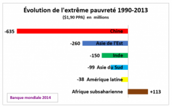 Contrairement à beaucoup d’autres pays, la croissance économique en Chine s’accompagne d’un fort recul de la pauvreté. Entre 1978 et 2015 le revenu des 50% de Chinois les plus pauvres a augmenté de 400%. Pendant la même période il baissait de 1% aux Etats-Unis alors même que l’économie y croissait de 184%. Là-bas l’accroissement des richesses va exclusivement à la couche supérieure (25). Ces 25 dernières années, la Chine a tiré un nombre record de personnes de la pauvreté extrême : 635 millions – soit le total de l’Afrique noire à ce moment. Au rythme actuel l’extrême pauvreté sera éradiquée vers 2020 (26).