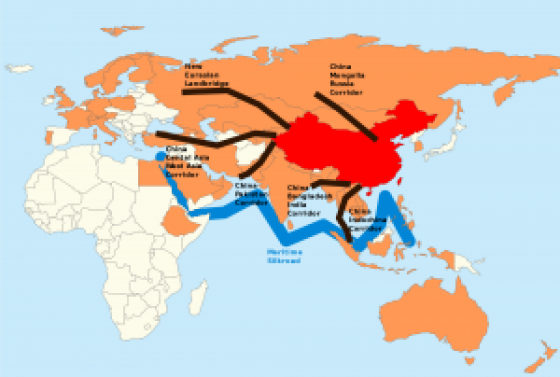 39. Financial Times, 9 octobre 2015, p. 9 ; http://www.ft.com/intl/cms/s/2/6e098274-587a-11e5-a28b-50226830d644.html ‘China Paves the Way for a New Silk Road’, Stratfor, 15 mai 2017 ;https://worldview.stratfor.com/article/china-paves-way-new-silk-road Financial Times, Special Report, Asian Infrastructure & Trade, 4 mai 2017, p. 5 ; https://www.ft.com/content/b9af2e26-0342-11e7-aa5b-6bb07f5c8e12 The Economist, 2017, 6 mai p. 45. https://www.economist.com/news/china/21721678-silk-routes-are-not-always-appealing-they-sound-china-faces-resistance-cherished-theme The Economist, 2 juillet 2016, p. 53 ; http://www.economist.com/news/china/21701505-chinas-foreign-policy-could-reshape-good-part-world-economy-our-bulldozers-our-rules Vien T., Stratfor, 24 juin 2015 ;https://www.stratfor.com/analysis/grand-design-chinas-new-trade-routes d’Hooghe I., ‘De Nieuwe Zijderoute moet China’s internationale positie versterken’, Internationale Spectator, 2015 n° 8.https://spectator.clingendael.org/pub/2015/8/china_en_de_nieuwe_zijderoute/ Source de la carte :https://commons.wikimedia.org/wiki/File:One-belt-one-road.svg?uselang=fr
