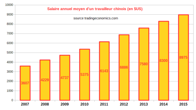 Salaire annuel moyen d’un travailleur chinois (en$US)