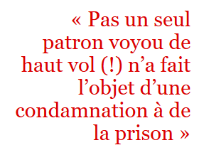 Pas un seul patron voyou de haut vol (!) n’a fait l’objet d’une condamnation à de la prison