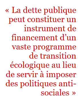 La dette publique peut constituer un instrument de financement d’un vaste programme de transition écologique au lieu de servir à imposer des politiques anti-sociales