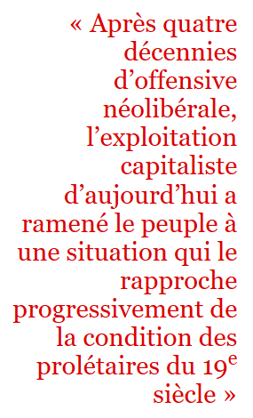 Après quatre décennies d’offensive néolibérale, l’exploitation capitaliste d’aujourd’hui a ramené le peuple à une situation qui le rapproche progressivement de la condition des prolétaires du 19e siècle