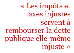 Les impôts et taxes injustes servent à rembourser la dette publique elle-même injuste