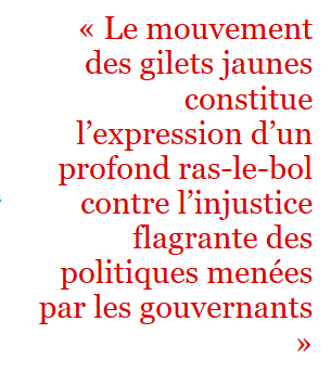 Le mouvement des gilets jaunes constitue l’expression d’un profond ras-le-bol contre l’injustice flagrante des politiques menées par les gouvernants