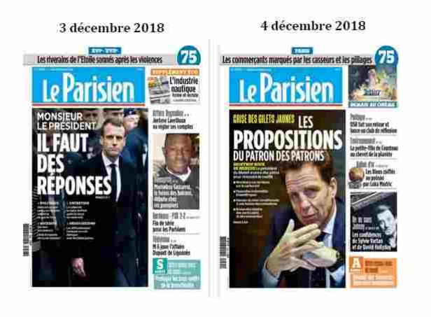 Choisir comme « réponses » à cette crise les « propositions » du patron du Medef, il fallait le faire ! Si nous n’osons penser que la rédaction du Parisien ignore les enjeux de classe qui se jouent dans le mouvement des gilets jaunes, on peut dire avec certitude qu’elle a, dans ce jeu-là… choisi son camp !