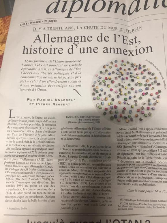 Allemagne de l’Est, histoire d’une annexion A lire dans le Monde diplomatique de ce mois-ci