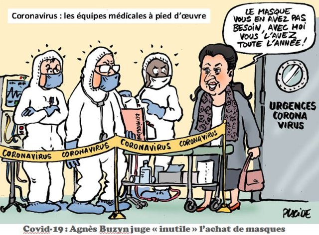 Et un quatrième masque, neutre, pour Sibeth Ndaye, vous savez, la chargée de la communication ? Mais avec un mode d’emploi !