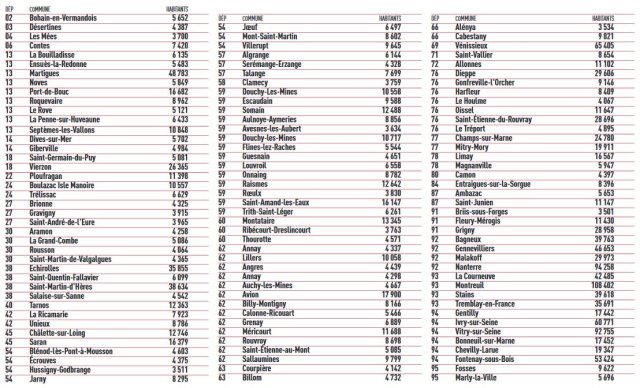 Communes de plus de 3500 habitants dirigées par un membre du PCF perdues