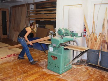 Eh oui ! Mes frères travaillaient dans cette scierie. Moi, ça me plaisait. Alors, j’y suis allée. I-m’ont pris ! Vous savez, faut pas chômer, pour scier (son bras droit mime le va et vient) il faut aussi se caler, comme ça (bras et jambes gauches) . C’est fatigant à force ! je me suis déglinguée l’épaule, le bras, i-flottait presque. Fallait opérer. Le chirurgien, il a regardé mon métier : « ça alors, c’est la première fois que je vois ce métier pour une femme » !