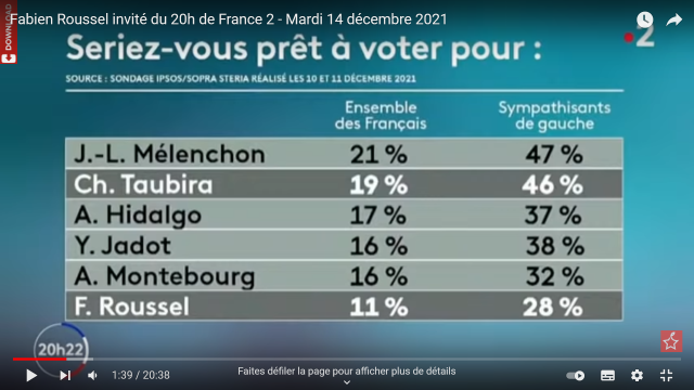Pourtant le sondage qui annonce Taubira laisse apparaitre une information qui peut tout bousculer. Il y a 11% des français qui « peuvent voter » pour Fabien Roussel [2] ! Sans compter tous ceux qui ne répondent pas aux sondages !